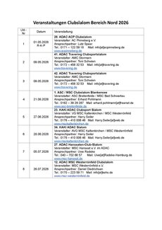Terminübersicht 2026 - Motorsportequipe Nord